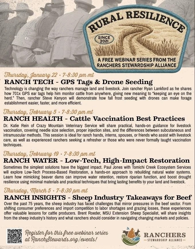 Don’t miss this opportunity to gain practical knowledge and connect with others dedicated to building resilient ranching and rural communities. Pre-registration is required—Zoom link will be emailed upon registration.