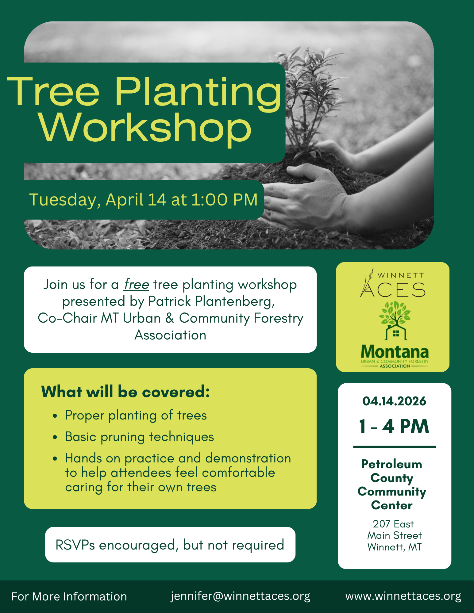At the PCCC in Winnett, MT, 1-4pm, April 14, 2026.